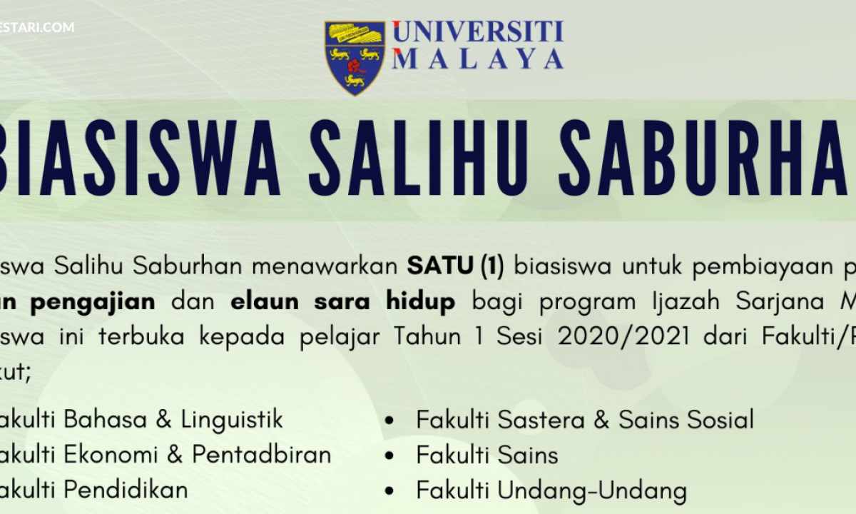 Permohonan Biasiswa Salihu Saburhan Buat Pelajar Universiti Malaya Edu Bestari